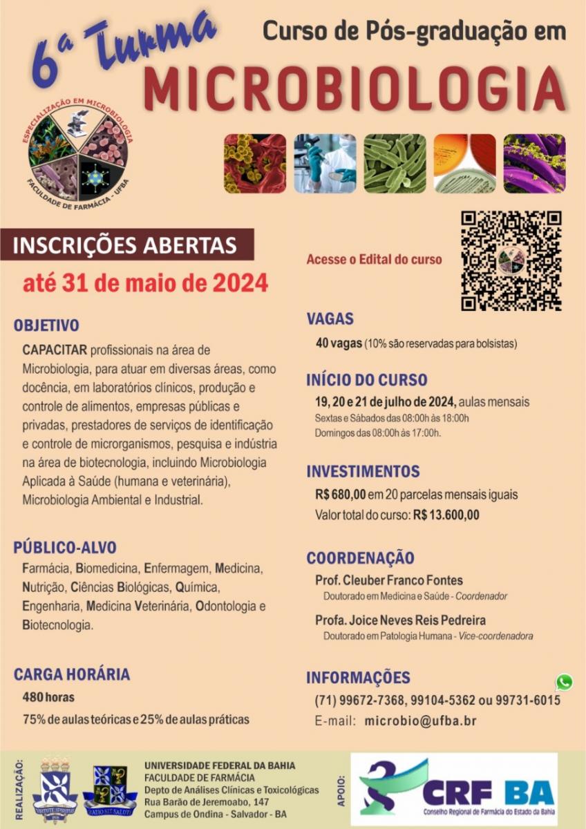 Colegiado da Pós-graduação em Microbiologia reabre inscrições para seleção da 6ª turma