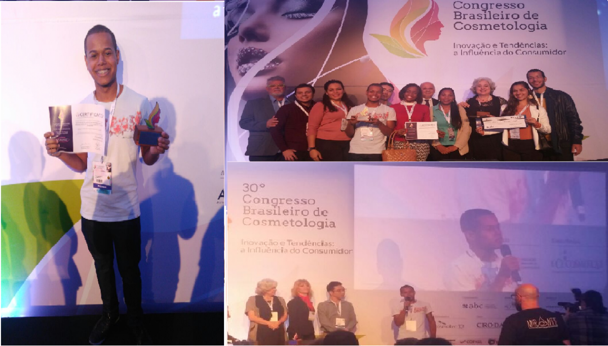 O Mestrando Italo Santos do PPGFAR, orientado pela profa Dra. Neila de Paula, foi premiado em 2a. lugar pelo melhor trabalho apresentado no 30º Congresso Brasileiro de Cosmetologia, ocorido em São Paulo entre os dias 22 a 25 de maio de 2017. O trabalho versou sobre a aplicação do óleo das sementes da goiaba em diferentes sistemas emulsionados e a honraria foi recebida com muita emoção pelo aluno e co-autores integrantes do grupo de Pesquisa em cosméticos. É novamente a UFBA mostrando seus talentos e potencial na área de inovação tecnológica. Parabens a todos os membros da equipe de pesquisa por esta merecida conquista e reconhecimento.
