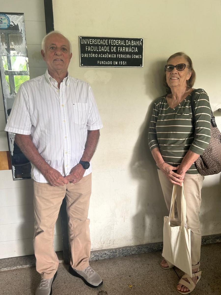 Durante a visita, o casal conheceu o Diretório Acadêmico que leva o nome de seu pai — Diretório Acadêmico Ferreira Gomes — e compartilhou valiosas memórias e relatos sobre sua trajetória.