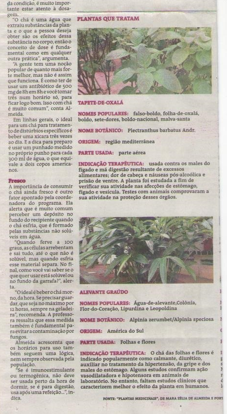 A professora Mára Zélia, coordenadora do Programa, chama a atenção quanto ao uso indiscriminado dos chás e alerta sobre os riscos à saúde decorrente do uso das plantas da moda, como a “canela-de-velho”.